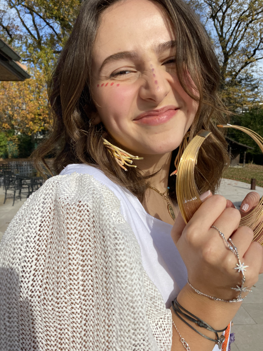 Cette pièce représente le plaisir qu’on peut avoir avec la nourriture. Pendant cette pandémie, je trouve que la plupart d’entre nous, avons renouer un lien avec elle, en cuisinant et en se laissant aller à gouter de nouveaux plats. Pour moi, cette pièce est celle de la fameuse et coquine gourmandise. Il faut se faire plaisir !! Les bouts de cordes peints, que j’ai mis en décoration, me font penser à des bonbons. De plus, j’ai utilisé des sets de table pour les manches qui rappelle à nouveau le monde de la nourriture.