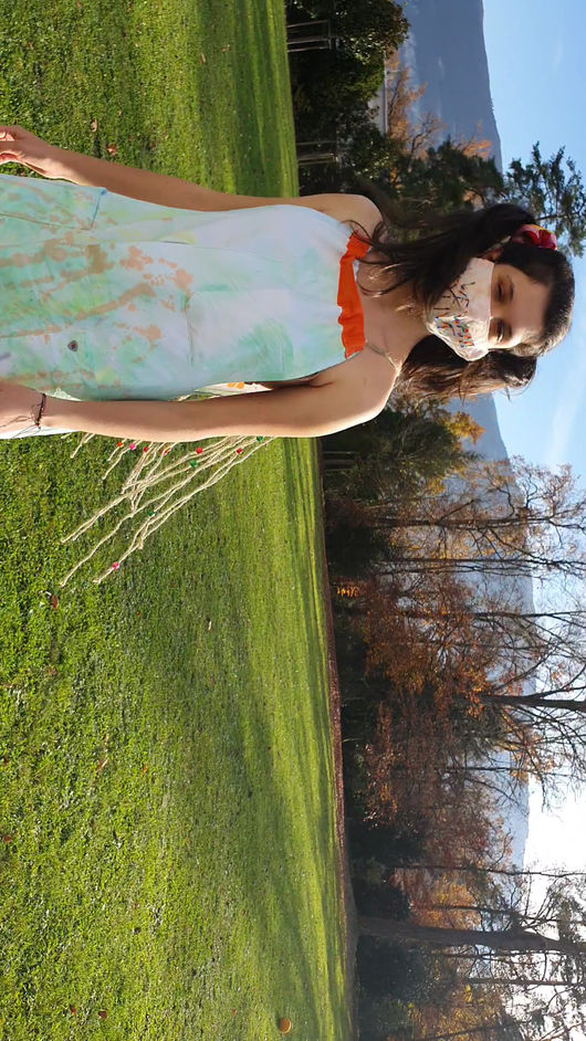 Cette tenue représente la joie que l’on peut avoir à passer une après-midi dans un jardin qui se réveille après l’hiver. C'est le plaisir de regarder les fleurs de toutes les couleurs qui s'épanouissent sous le soleil.